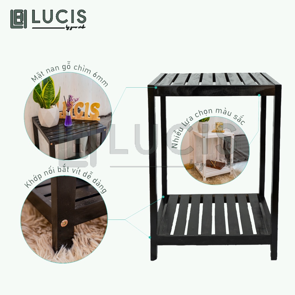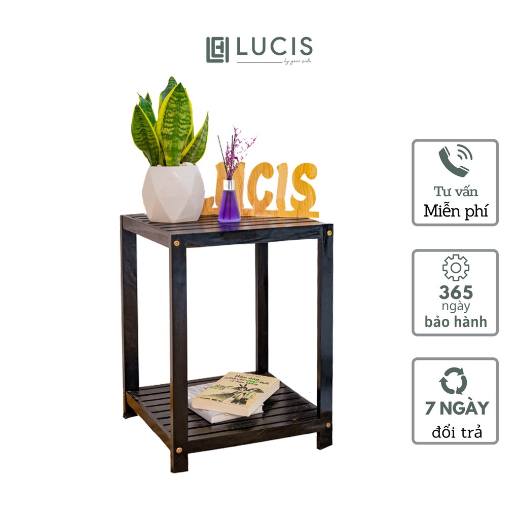 Nhà cửa & Đời sống > Nội thất > Kệ & Giá || [Mã BMINC50 giảm 10% đơn 99k] Kệ gỗ vuông để đồ phòng ngủ 2 tầng LUCIS màu đen cao cấp - Kệ đầu giườngCòn hàng