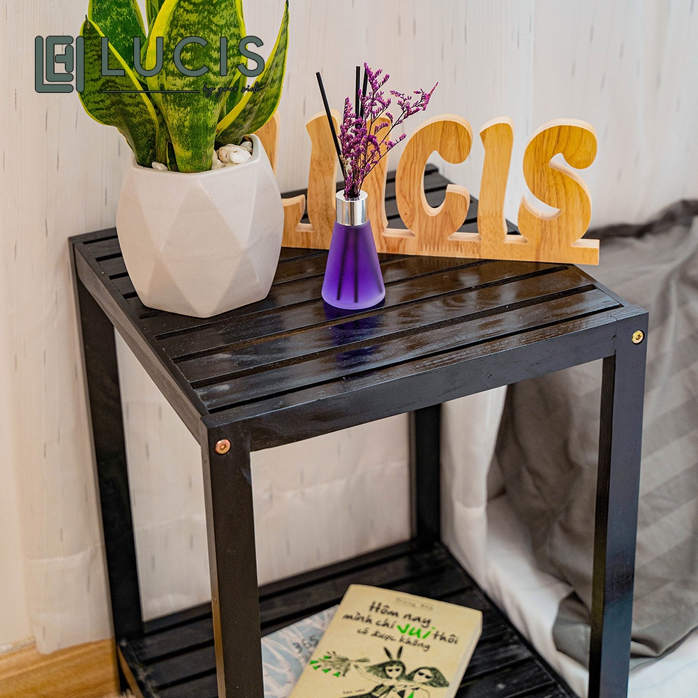 Giới thiệu Kệ gỗ vuông để đồ phòng ngủ 2 tầng LUCIS màu đen cao cấp Kệ đầu giường