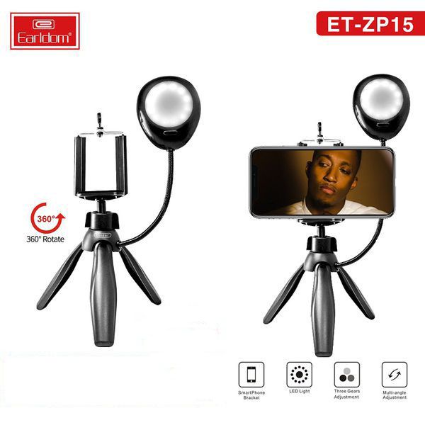 Tripod Kèm Đèn Hỗ Trợ Selfie Earldom ZP-15- Livestream, selfie đã trở nên quá thuận lợi khi Earldom ra mắt sản phẩm Tripod Kèm Đèn Hỗ Trợ Selfie Earldom ZP-15, với rất nhiều những ưu điểm dưới đây: