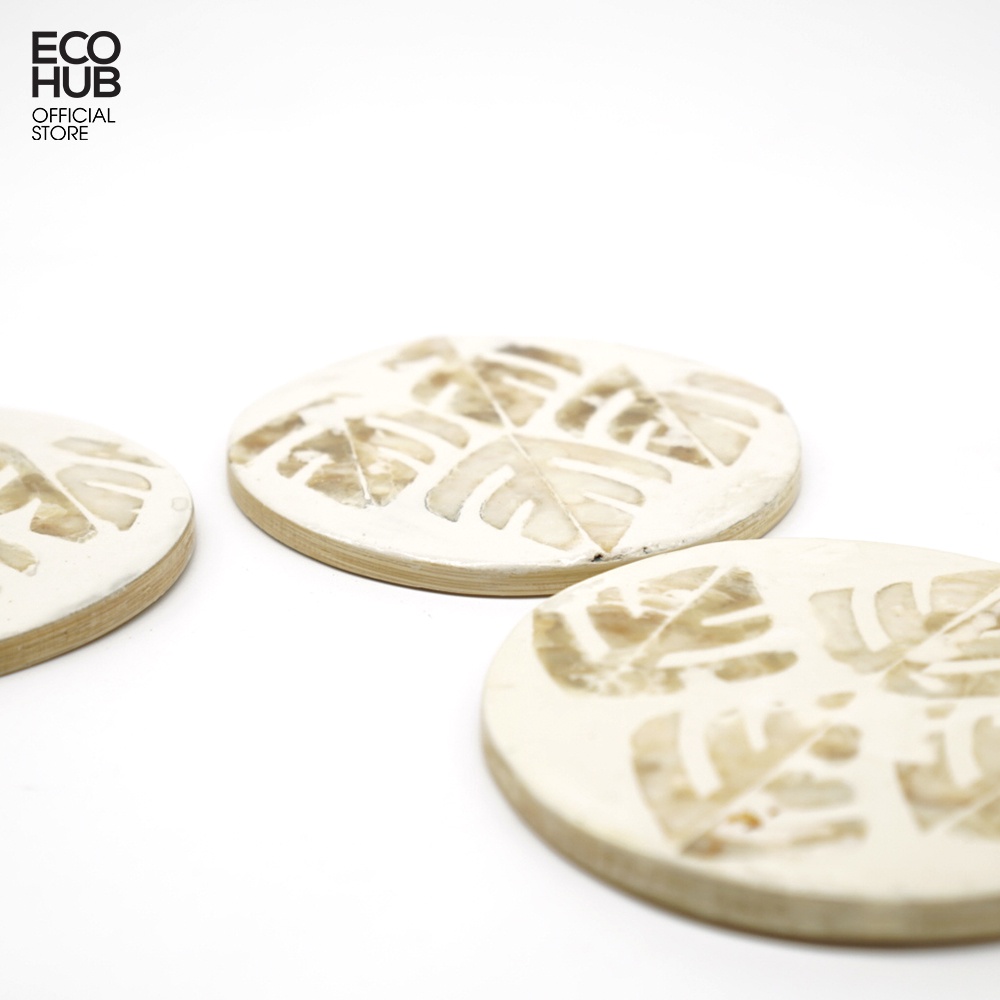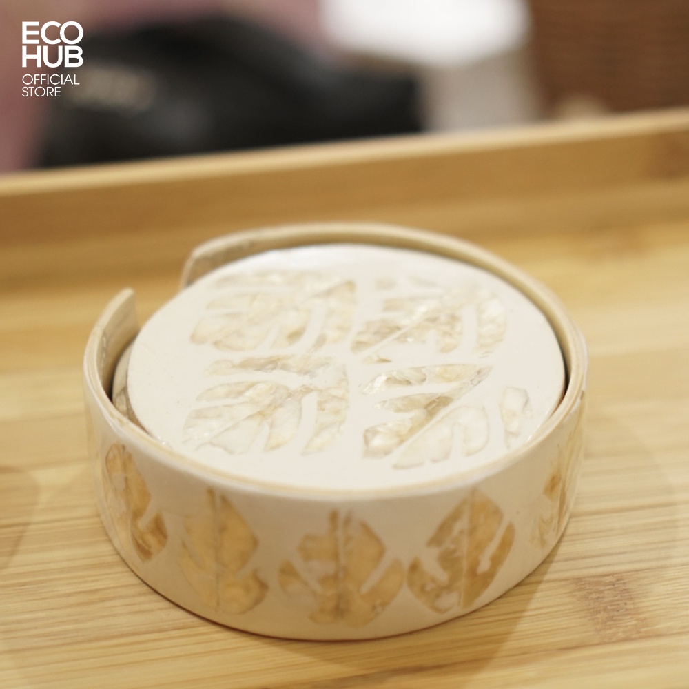 Giới thiệu [Mã BMINCU50 giảm 50K đơn 250K] Lót ly, Lót cốc khảm trai cao cấp, Trắng ngà, Bộ 4 lót, Uống Trà, Cafe (Size 9.5cm)