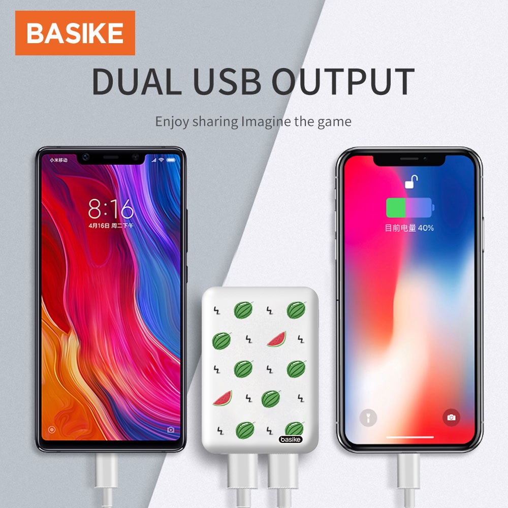 Điện Thoại & Phụ Kiện > Phụ kiện > Sạc dự phòng & Pin > Sạc dự phòng || [Mã BMINCU50 giảm 50K đơn 250K] Sạc dự phòng 10000mAh BASIKE PT605 USB đầu ra kép với cáp sạcCòn hàng