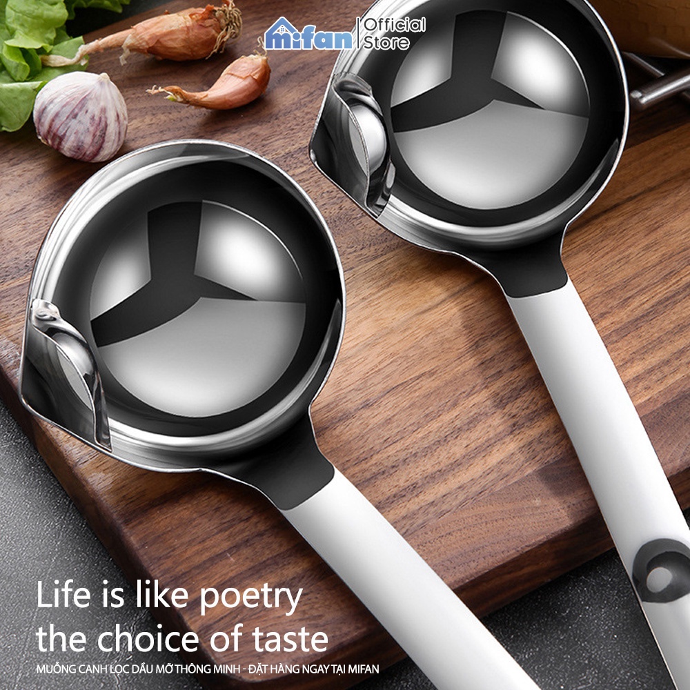 Nhà cửa & Đời sống > Dụng cụ nhà bếp > Cây vét bột & đồ gắp thức ăn || [Mã BMINCU50 giảm 50K đơn 250K] Muỗng Canh Lọc Dầu Mỡ Thông Minh Inox 304 Mifan - Hàng Chính HãngCòn hàng