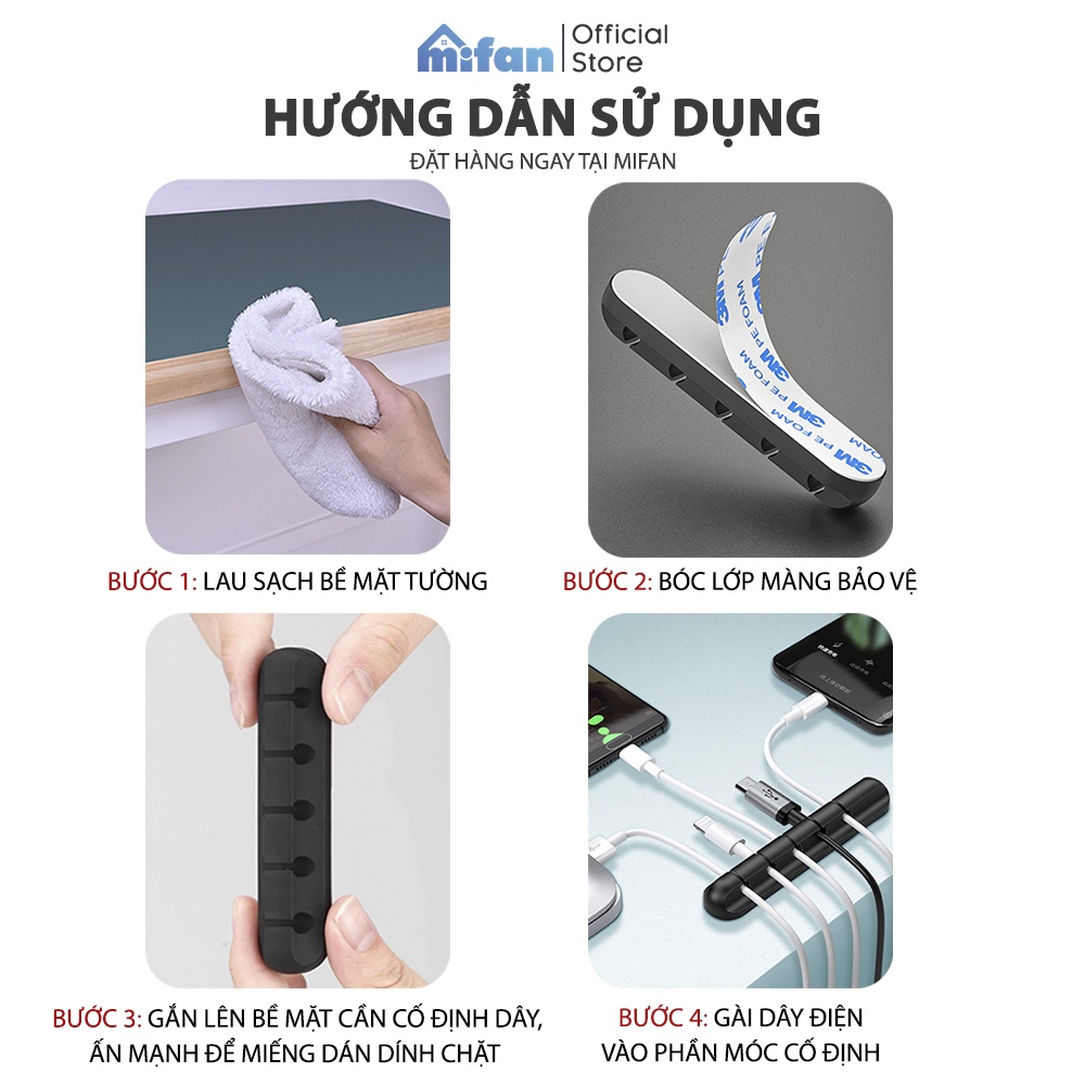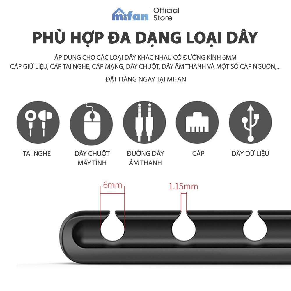 Nhà cửa & Đời sống > Sắp xếp nhà cửa > Móc treo || [Mã BMINCU50 giảm 50K đơn 250K] Miếng Silicone Kẹp Giữ Dây Cáp Sạc Điện Thoại, Máy Tính Cao Cấp MIFAN - Keo 3M Siêu Dính
