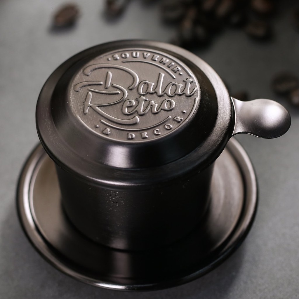 Nhà cửa & Đời sống > Dụng cụ nhà bếp > Dụng cụ pha trà, cà phê || [Mã BMINCU50 giảm 50K đơn 250K] Phin cà phê, bộ, mẫu nhôm anode xước, màu metallic black, Dalat RetroCòn hàng