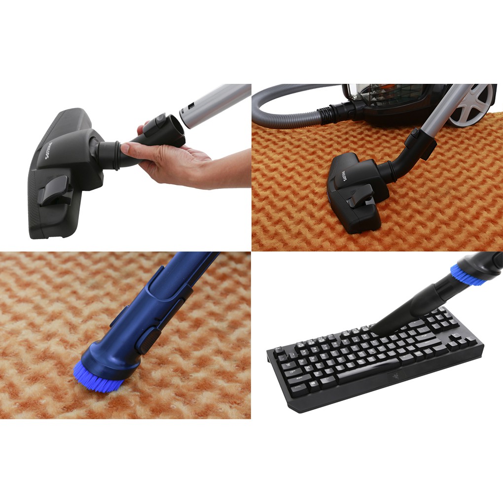 Máy có đầu hút sàn, thảm, đầu hút khe, chổi, làm sạch mọi vị trí trong nhà thuận lợi hơn