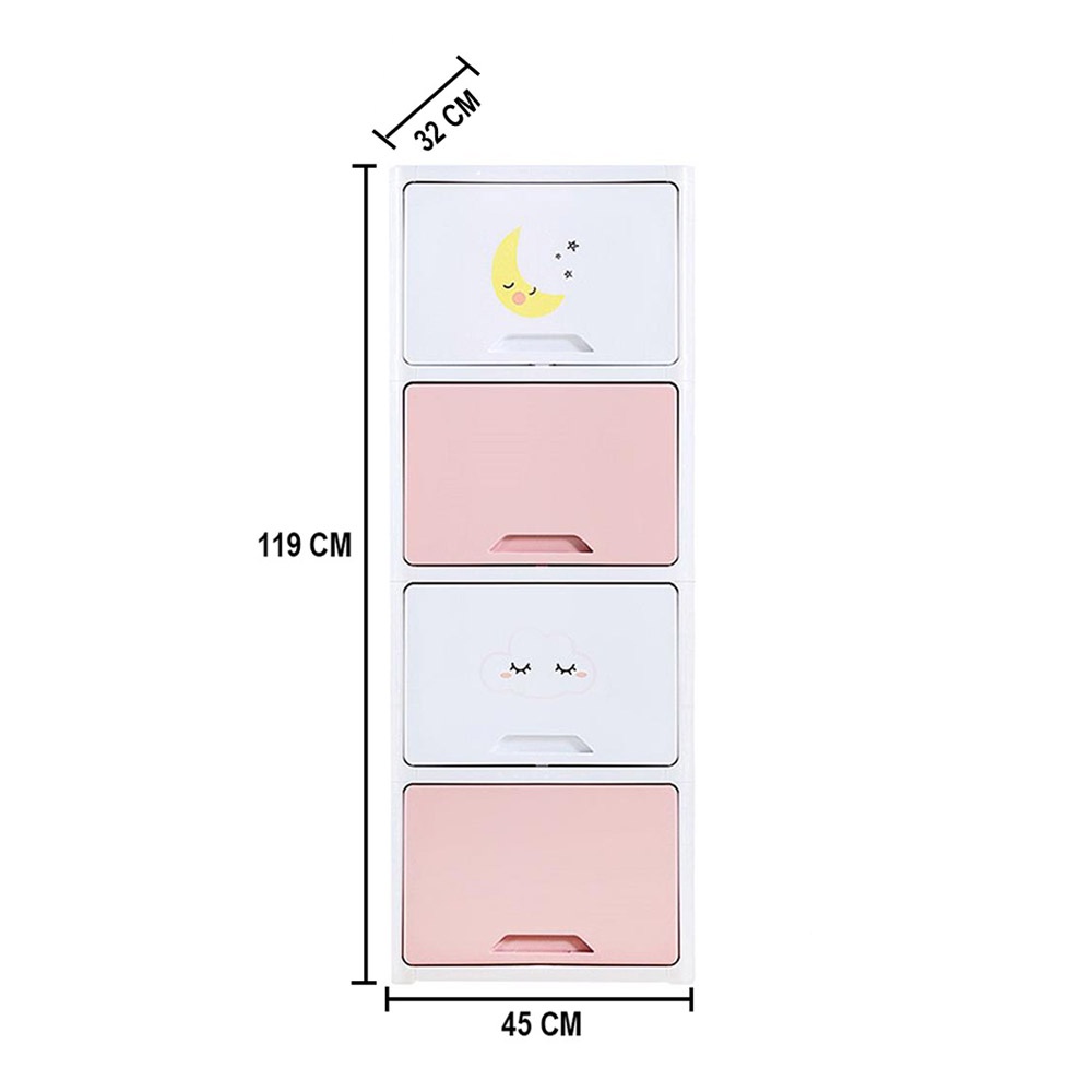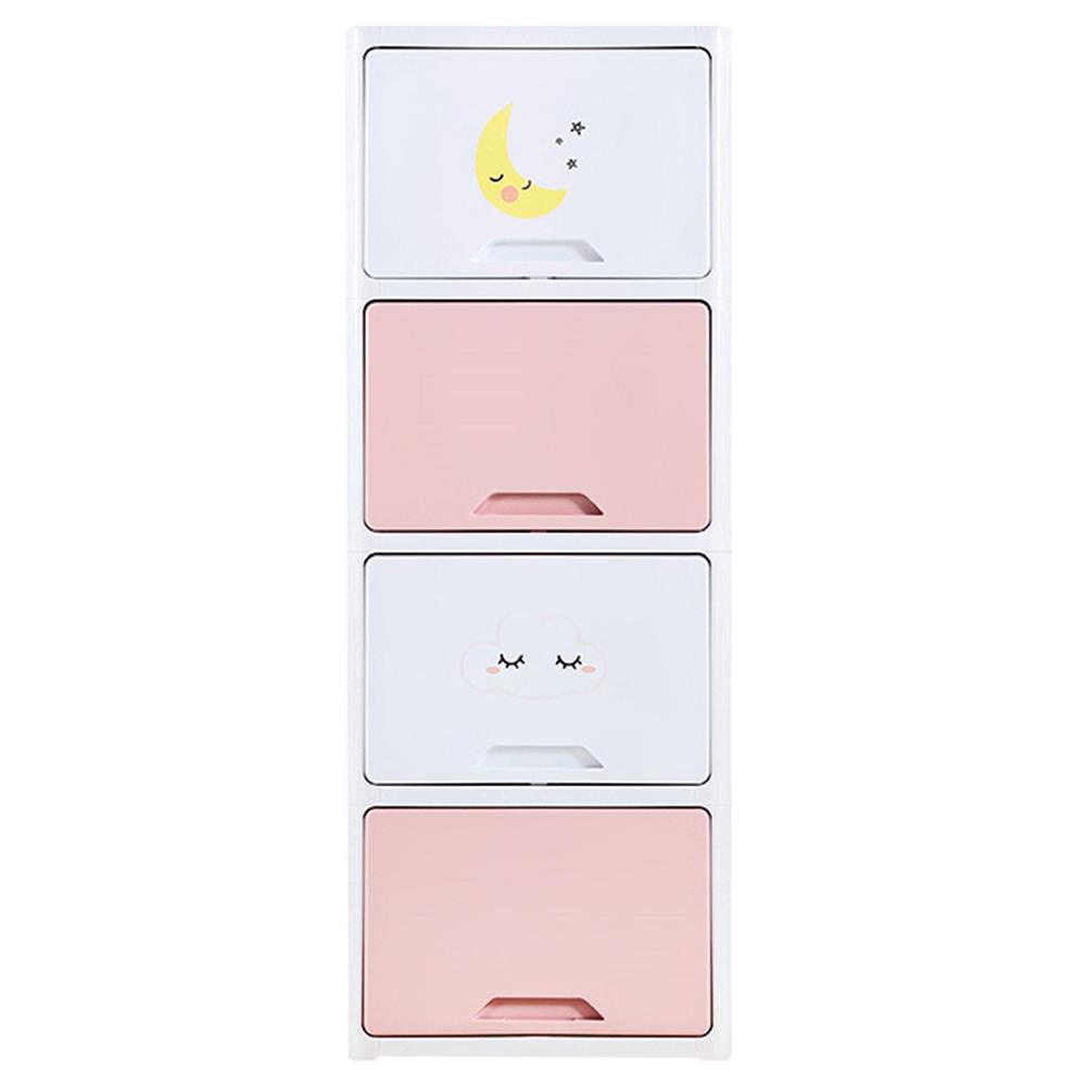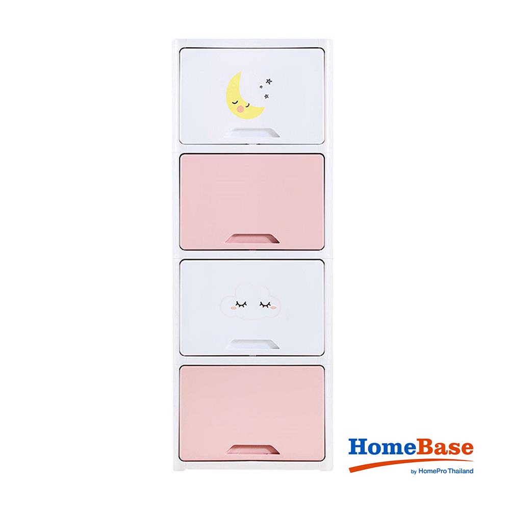 HomeBase STACKO Tủ nhựa 4 ngăn kéo hoạt hình TINY W45xH119xD32cm màu hồng pastel