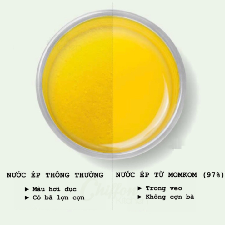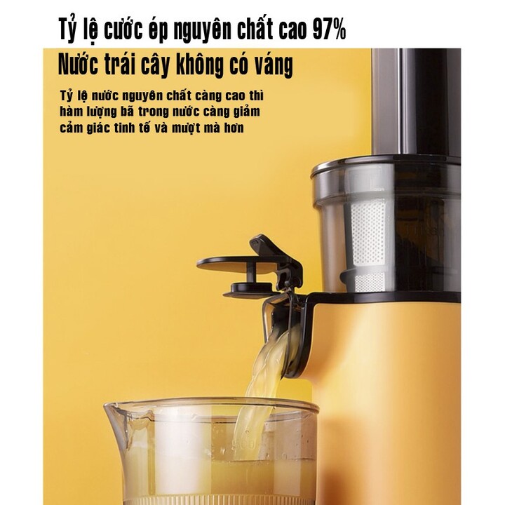 - Tỷ lệ nước ép nguyên chất 97% Không còn cặn bã khó chịu, tỷ lệ nước ép nguyên chất càng cao, hàm lượng cạn bã càng thấp. Việc thưởng thức nước ép trái cây trở nên tinh tế và hấp dẫn hơn