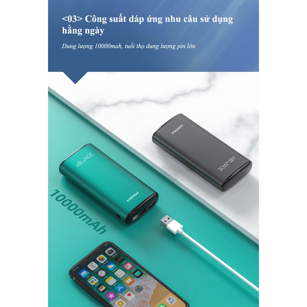 Sạc dự phòng PISEN Quick QP 20W 10000mAh - (LS-DY06) - Hàng chính hãng