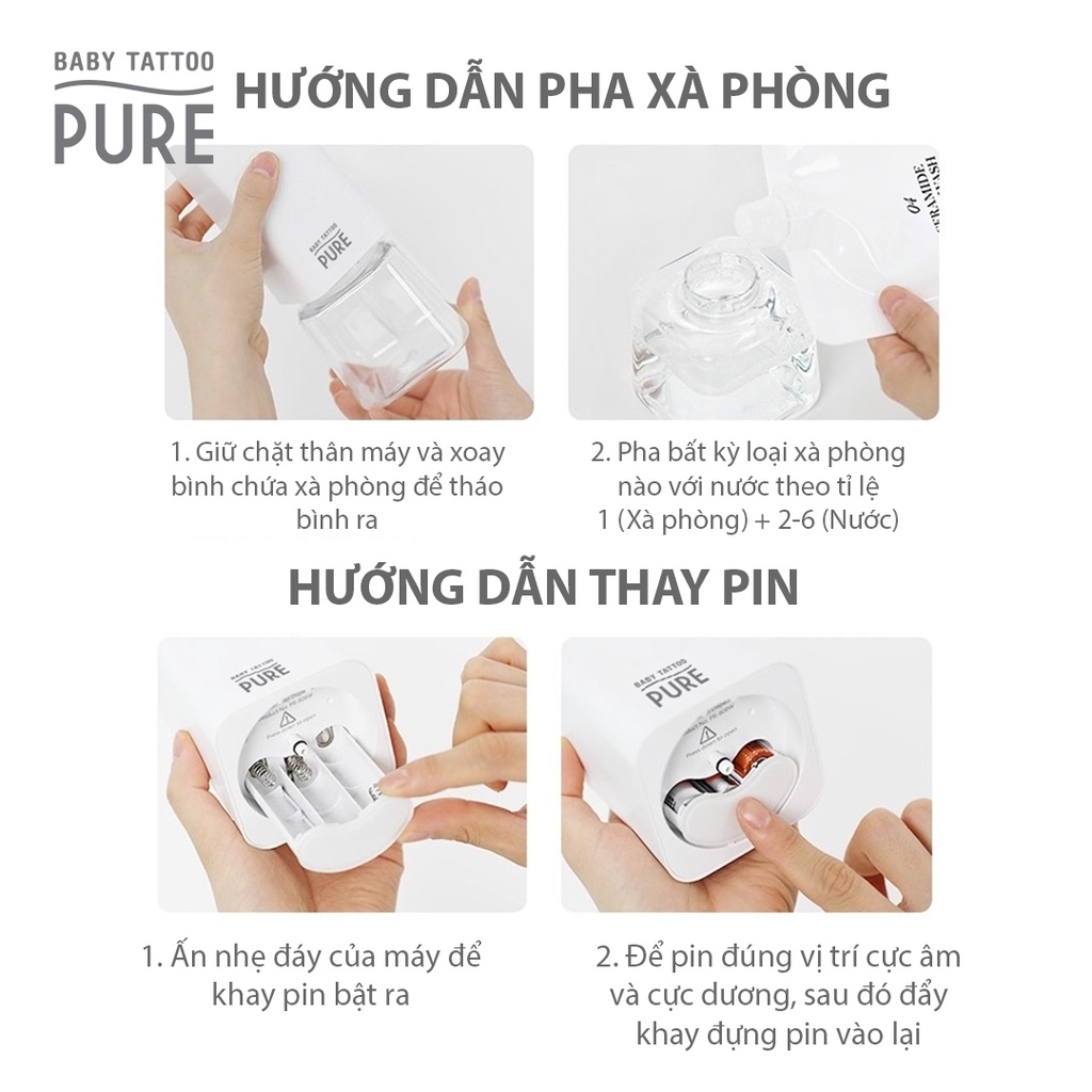 Thông tin sản phẩm:- Tên sản phẩm: Máy tạo bọt rửa tay tự động BABY TATTOO PURE