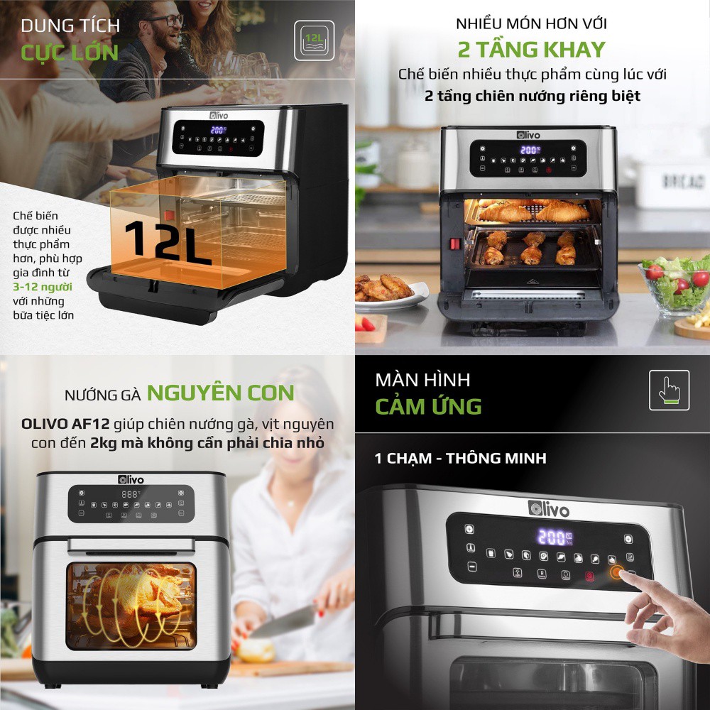 Thiết Bị Điện Gia Dụng > Đồ gia dụng nhà bếp > Nồi chiên không dầu || (Mã CHUT0005 giảm 50k) Nồi Chiên Không Dầu Olivo AF12 Dung Tích 12L Thương hiệu Mỹ - Hàng Chính HãngCòn hàng