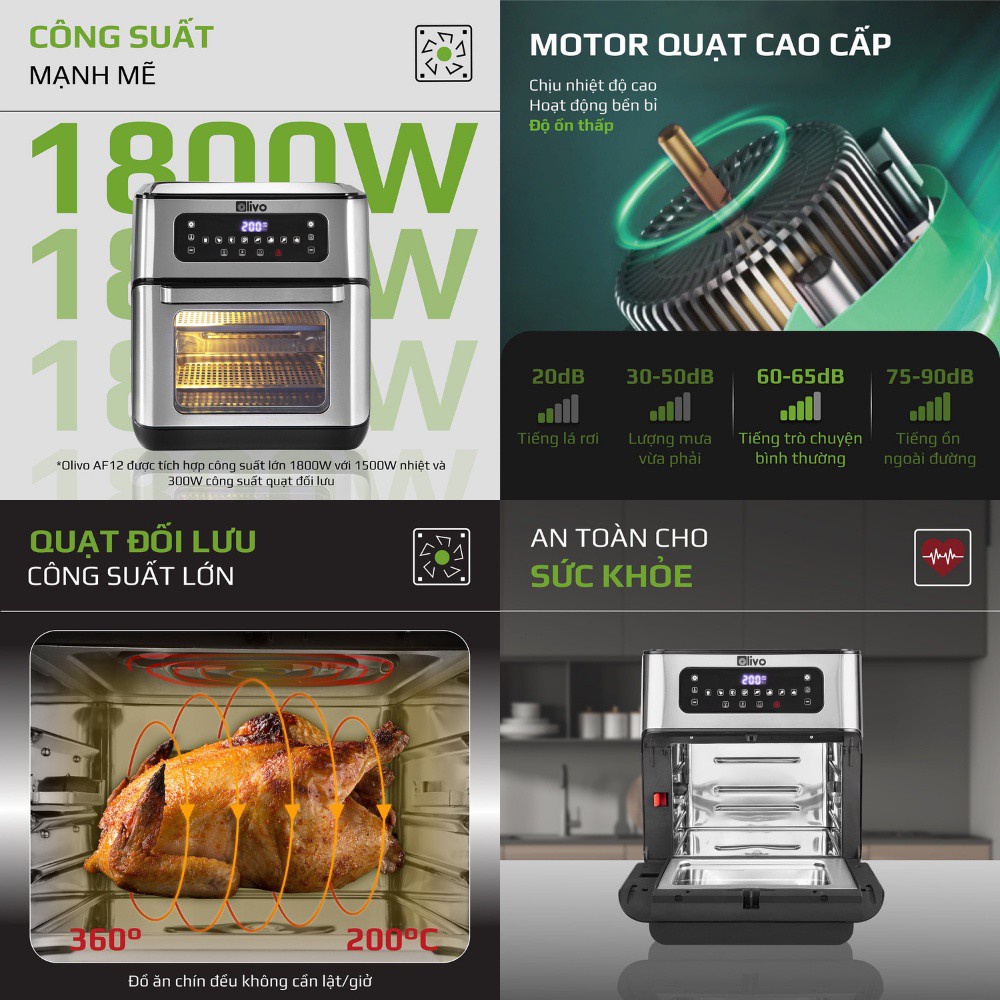 Thiết Bị Điện Gia Dụng > Đồ gia dụng nhà bếp > Nồi chiên không dầu || (Mã CHUT0005 giảm 50k) Nồi Chiên Không Dầu Olivo AF12 Dung Tích 12L Thương hiệu Mỹ - Hàng Chính HãngCòn hàng