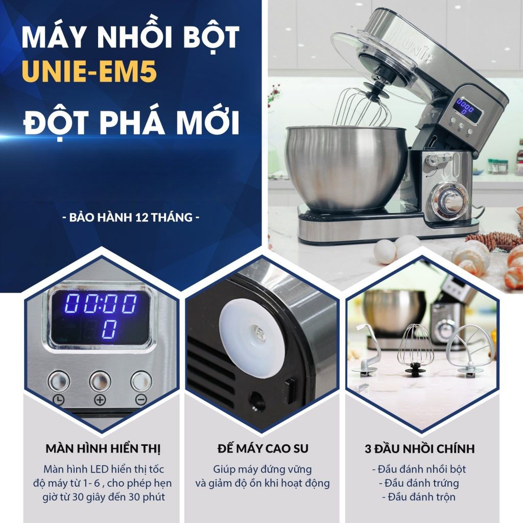 Thiết Bị Điện Gia Dụng > Đồ gia dụng nhà bếp > Máy trộn thực phẩm || (Mã CHUT002 giảm 8%) Máy nhồi, trộn bột đa năng Unie EM5 (Bản nâng cấp) - 8L - Hàng chính hãngCòn hàng