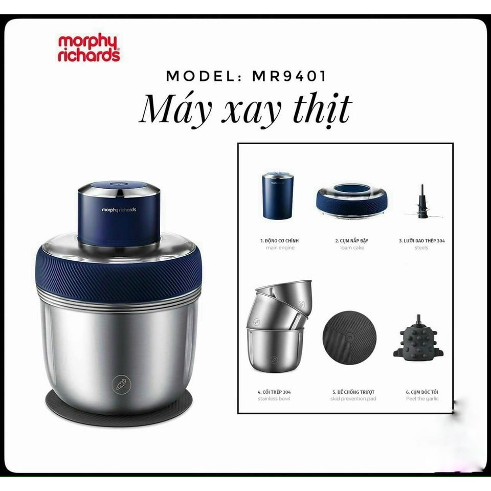 Thiết Bị Điện Gia Dụng > Đồ gia dụng nhà bếp > Máy chế biến thực phẩm & Xay thịt || [Mã 273ELHA100K0 hoàn 7% đơn 500K] (Mã CHUT002 giảm 8%) Máy xay thịt Morphy Richards MR9401 - Hãng Chính HãngCòn hàng