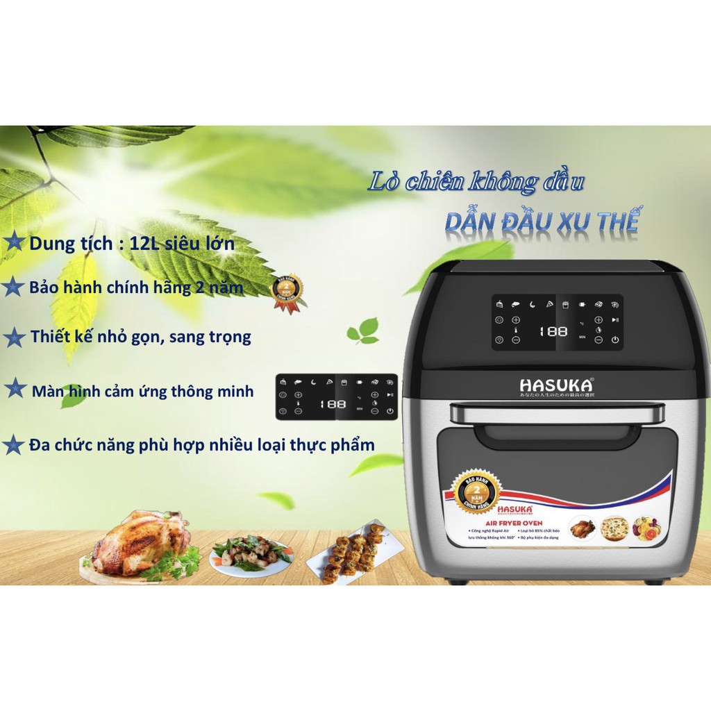 Giới thiệu (Mã CHUT002 giảm 8%) Nồi chiên không dầu Hasuka HSK 359 dung tích lớn 12L - Hàng chính hãng