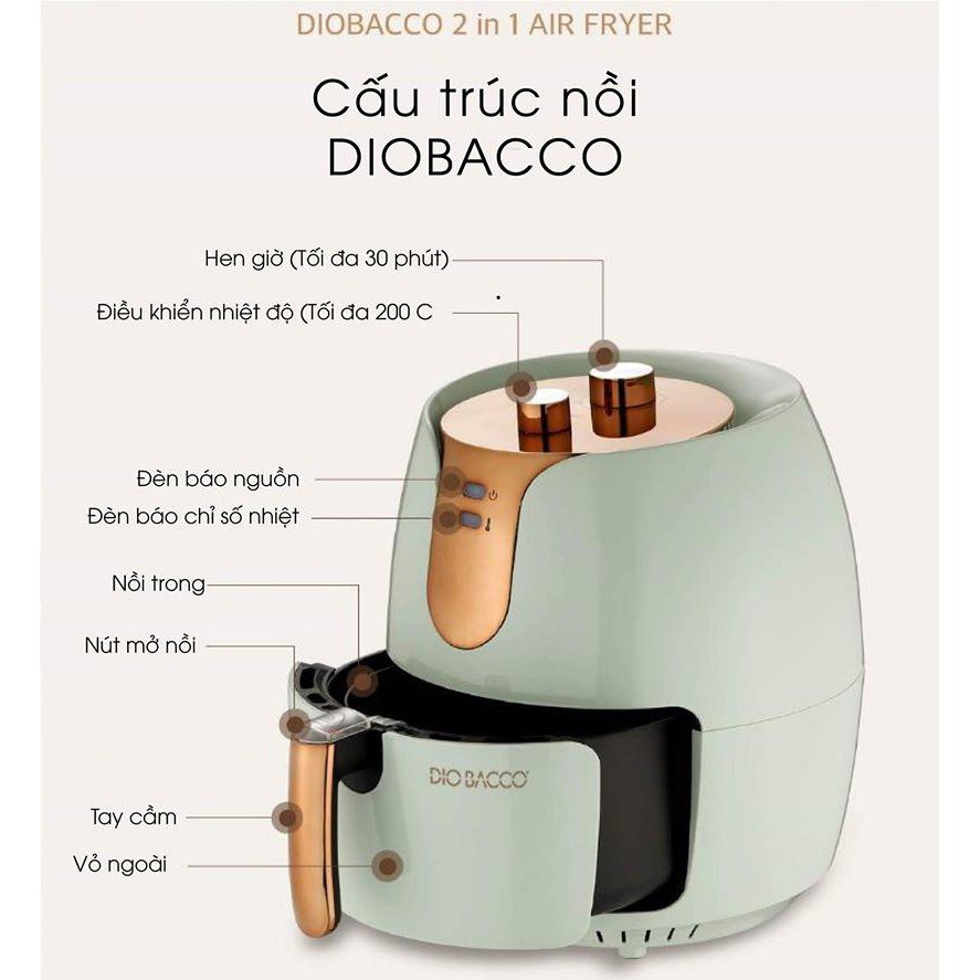 Giới thiệu (Mã CHUT002 giảm 8%) Nồi Chiên Không Dầu Dio Bacco 2in1 Dung Tích 7L, Bảo Hành 12 Tháng - Hàng Nội Địa Hàn Quốc