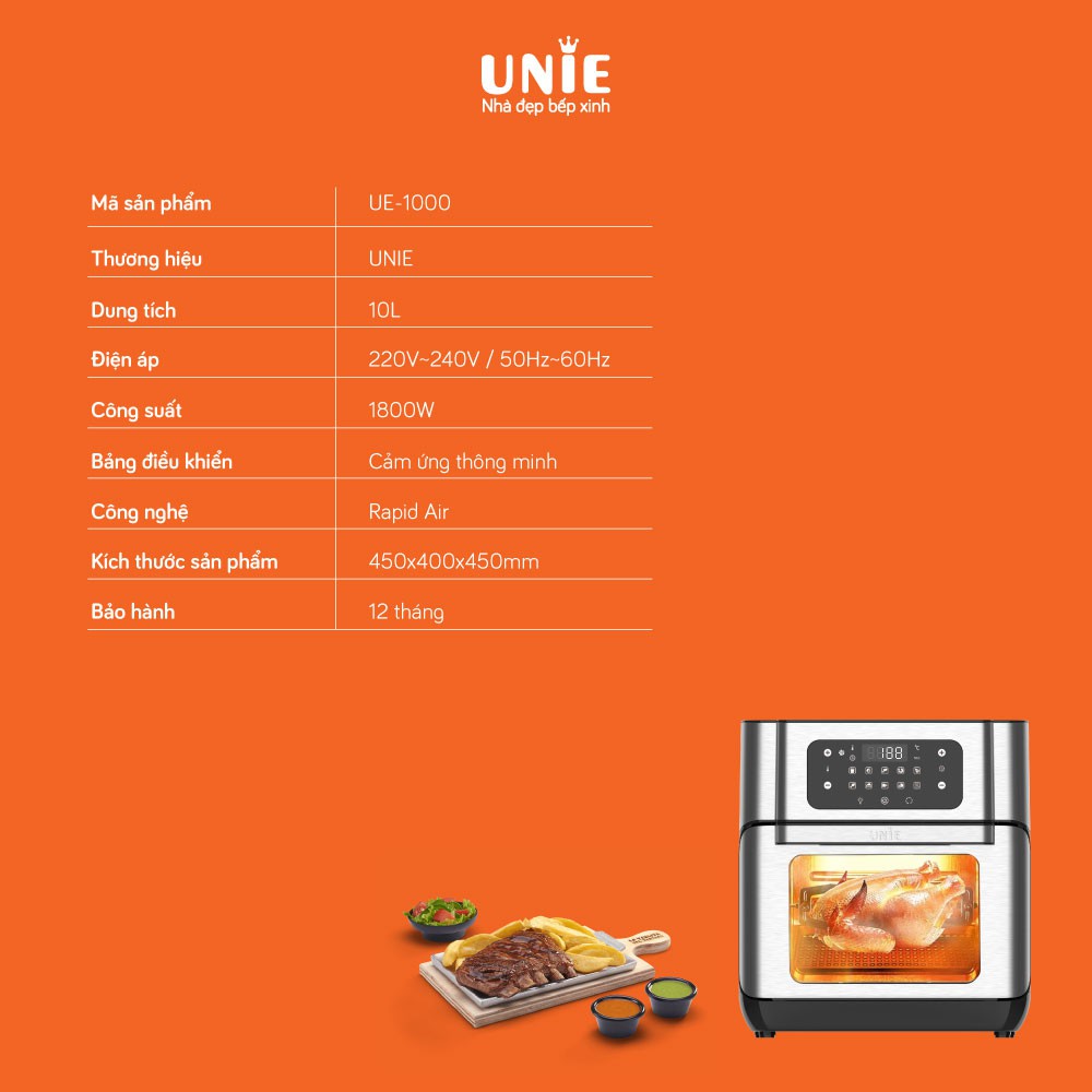 Giới thiệu [Mã ELHADEV giảm 4% đơn 300K] (Mã CHUT002 giảm 8%) Nồi chiên không dầu 10L UNIE UE-1000 - Hàng Chính Hãng