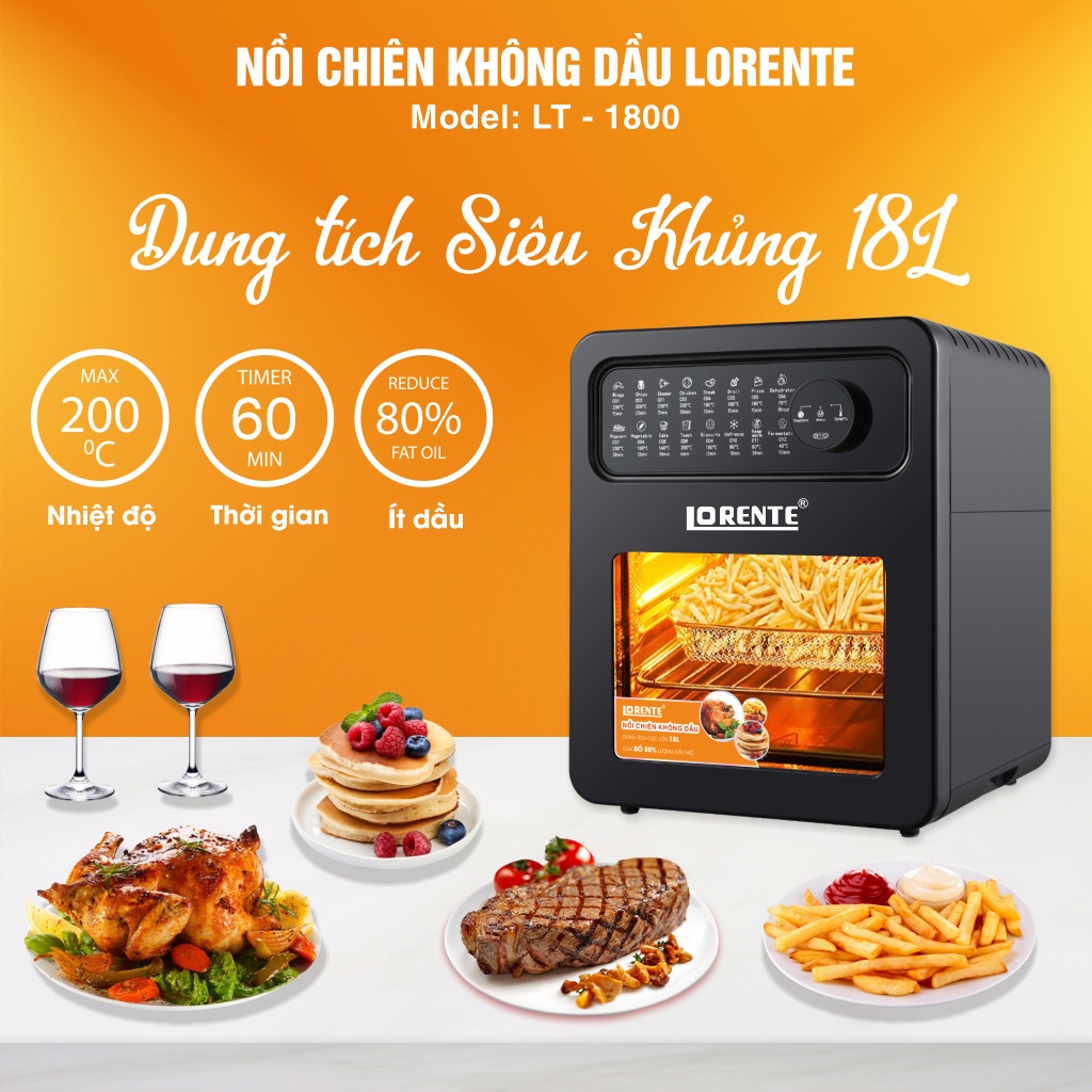 Giới thiệu [Mã ELHADEV giảm 4% đơn 300K] (Mã CHUT002 giảm 8%) Nồi chiên không dầu Lorente LT-1800 - Hàng Chính Hãng