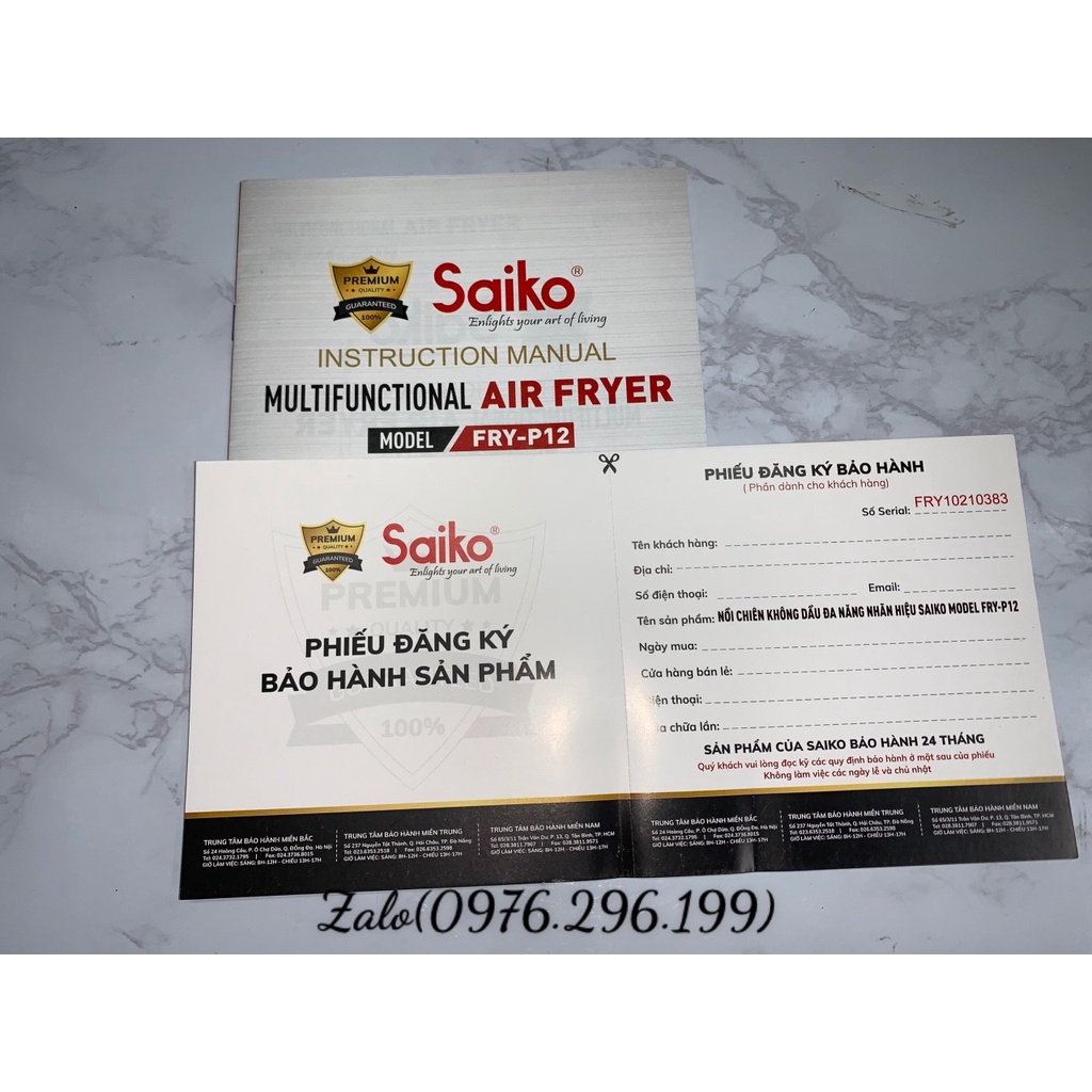 [Mã ELHADEV giảm 4% đơn 300K] (Mã CHUT002 giảm 8%) Nồi chiên không dầu Saiko Fry-P12 dung tích 12 lít - Hàng chính hãng