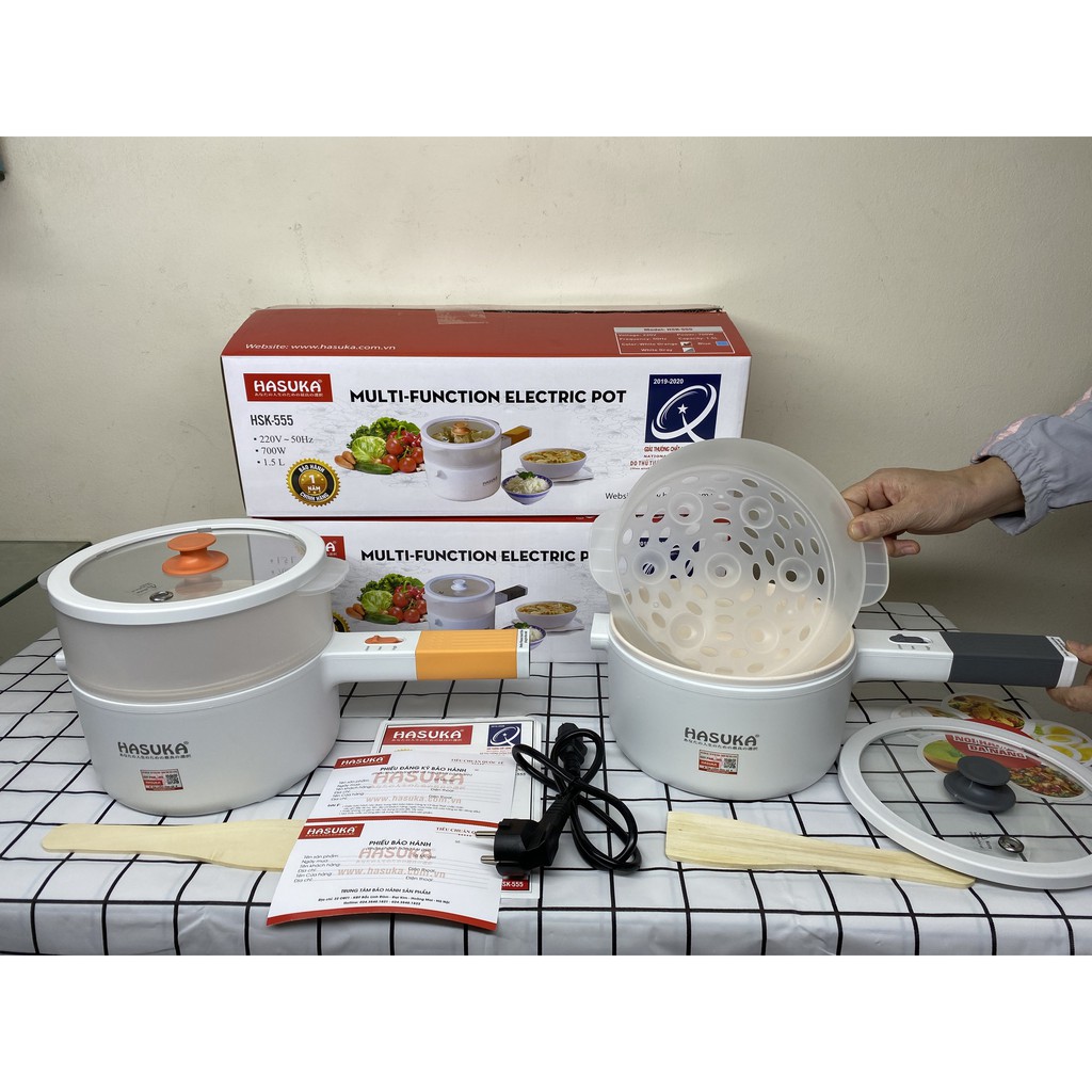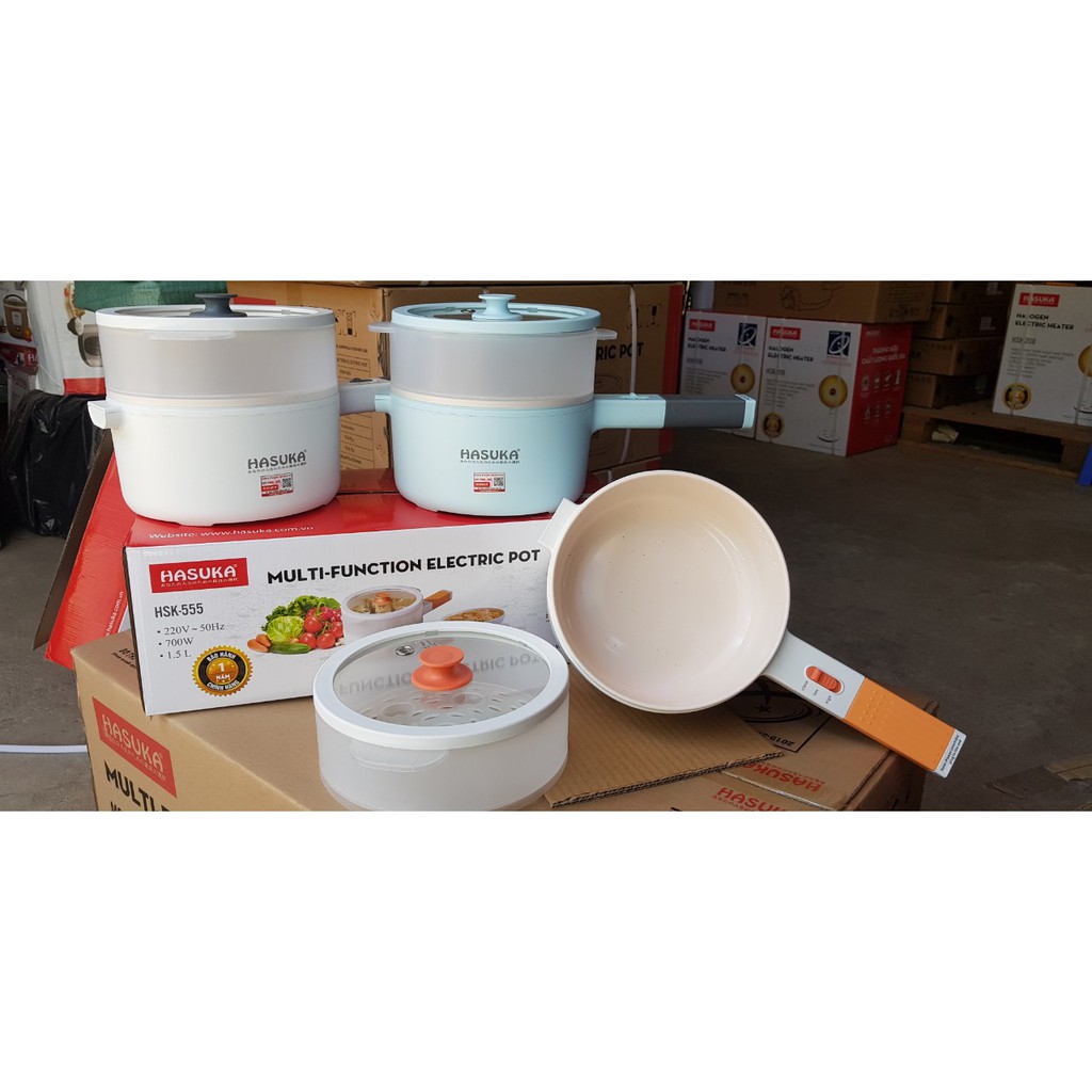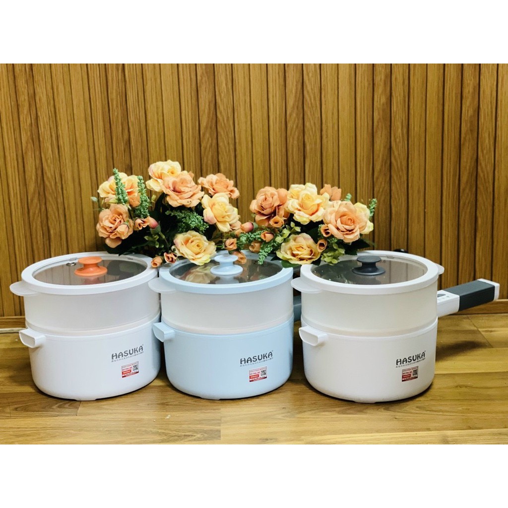 (Mã CHUT002 giảm 8%) Nồi lẩu điện đa năng mini HASUKA HSK555 kèm xửng hấp - Hàng Chính Hãng