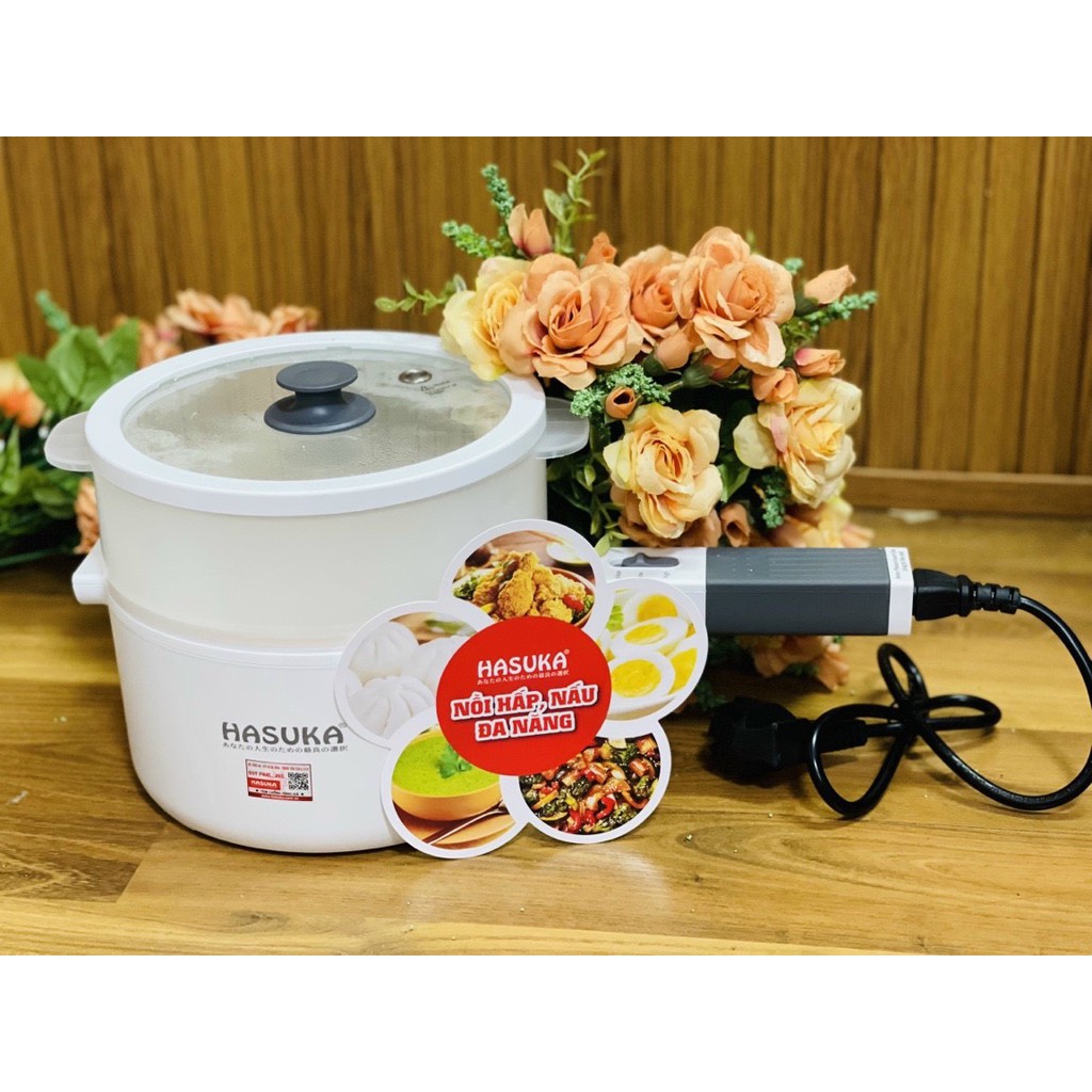 Giới thiệu (Mã CHUT002 giảm 8%) Nồi lẩu điện đa năng mini HASUKA HSK555 kèm xửng hấp - Hàng Chính Hãng
