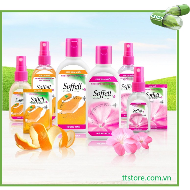 Giới thiệu Xịt / Kem bôi chống muỗi Soffell Hương hoa, cam [sofell, soffel, sofel]