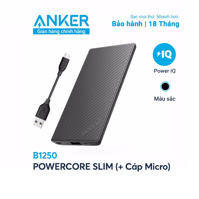 Điện Thoại & Phụ Kiện > Pin sạc dự phòng > 5000 - 10000mAh || [Mã ELAK045 giảm 5% đơn 999K] Pin sạc dự phòng ANKER PowerCore Slim 5000 kèm cáp MicroUSB dài 10cm - B1250H12Còn hàng