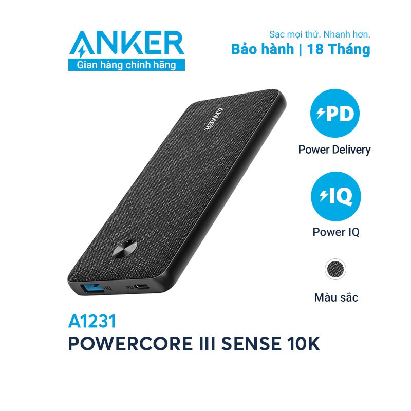 Điện Thoại & Phụ Kiện > Pin sạc dự phòng > 5000 - 10000mAh || [Mã ELAK045 giảm 5% đơn 999K] Pin sạc dự phòng ANKER PowerCore III Sense 10K 10000mAh - A1231Còn hàng