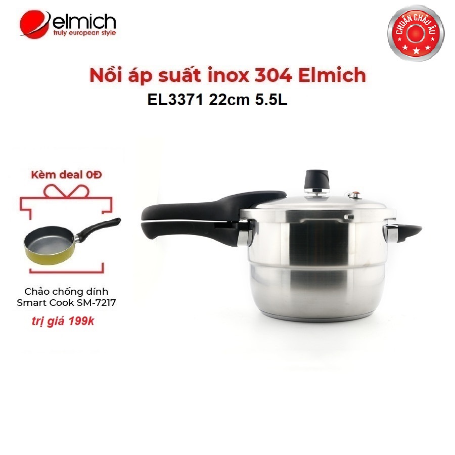 Thiết Bị Điện Gia Dụng > Đồ gia dụng nhà bếp > Nồi áp suất || [Mã ELBAU10 giảm 10% đơn 500K] Nồi áp suất inox 304 Elmich 22cm 6.0L EL3371Còn hàng