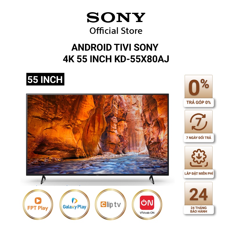 Thiết Bị Điện Gia Dụng > Tivi & Phụ kiện > Tivi || [Mã ELBAU1TR giảm 5% đơn 3TR] Android Tivi Sony 4K 55 inch KD-55X80AJ Mới 2021 - Miễn Phí Lắp ĐặtCòn hàng