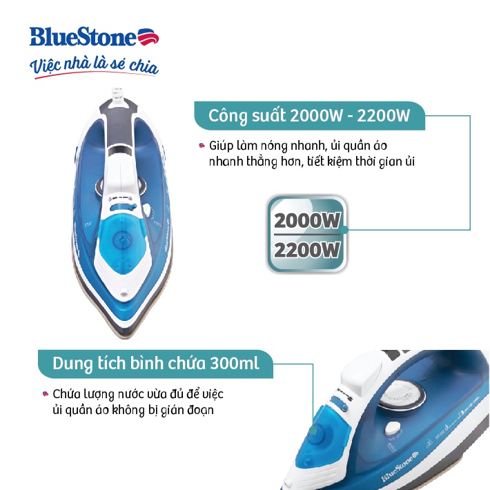 Giới thiệu [Mã ELBLUEWL5 giảm 10% đơn 500K] BÀN ỦI HƠI NƯỚC BLUESTONE SIB-3831