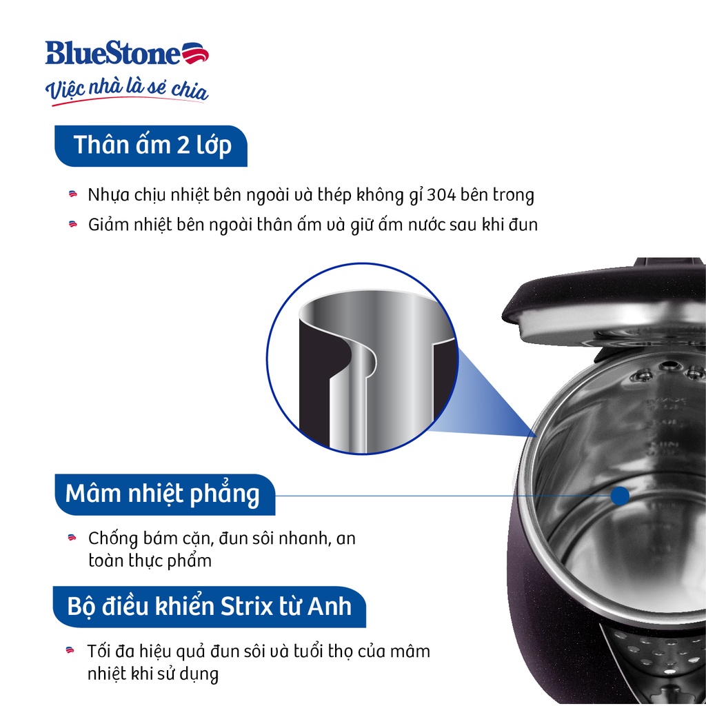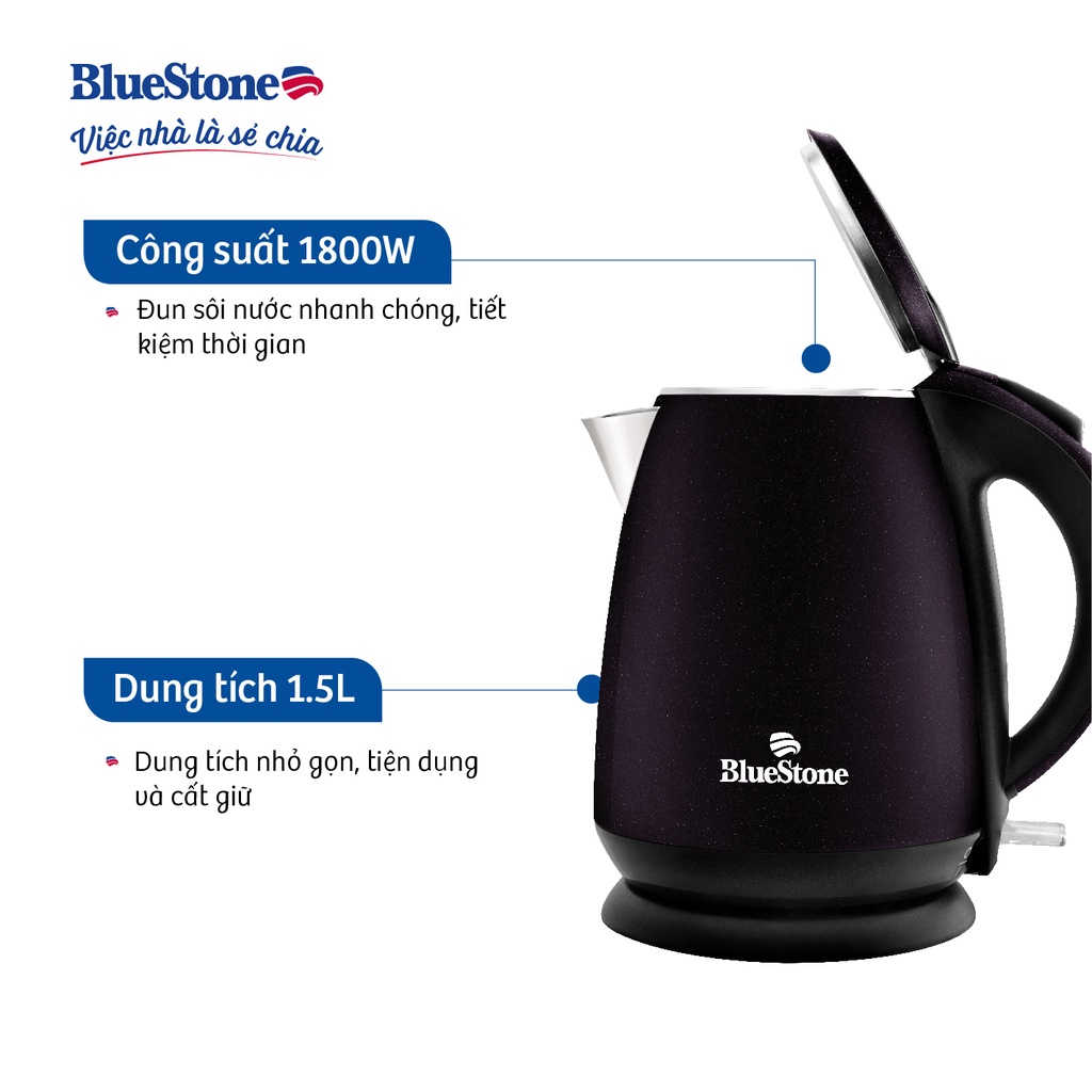- Ấm đun BlueStone tiện dụng, an toàn và dễ sử dụng để các thành viên trong gia đình có thể dễ dàng sẻ chia việc nhà cùng nhau và tận hưởng hạnh phúc mỗi ngày.