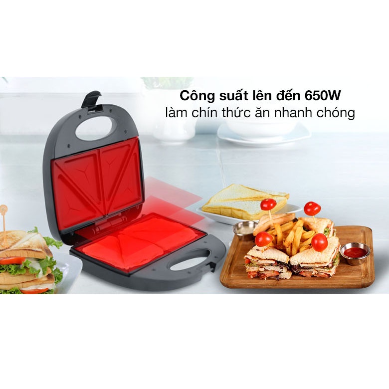 _Công suất (550-650) W_2 bề mặt khuôn nướng cùng lúc giúp tiết kiệm thời gian làm các món ăn nhẹ đầy đủ dinh dưỡng.