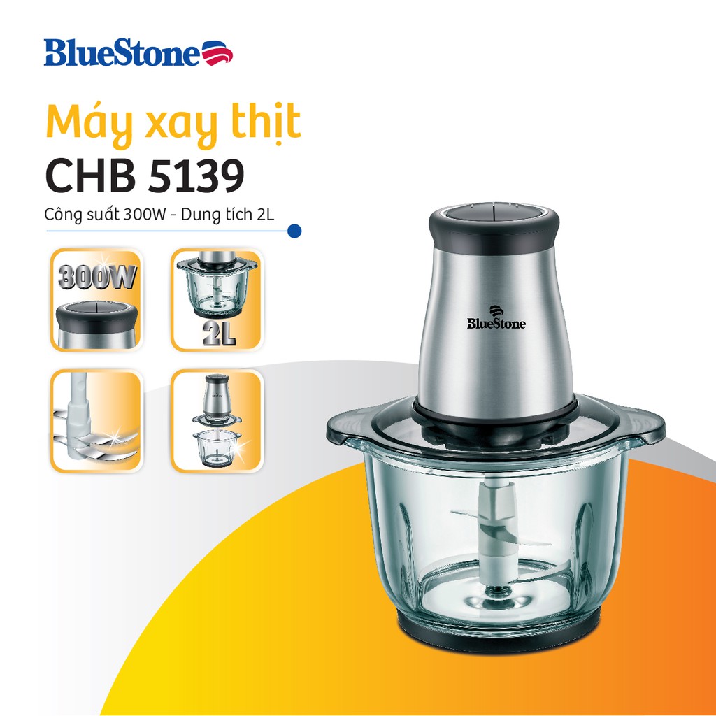 Thiết Bị Điện Gia Dụng > Đồ gia dụng nhà bếp > Máy chế biến thực phẩm & Xay thịt || Máy Xay Thịt 2 Lưỡi Dao Kép BlueStone CHB-5139 (2L)Còn hàng