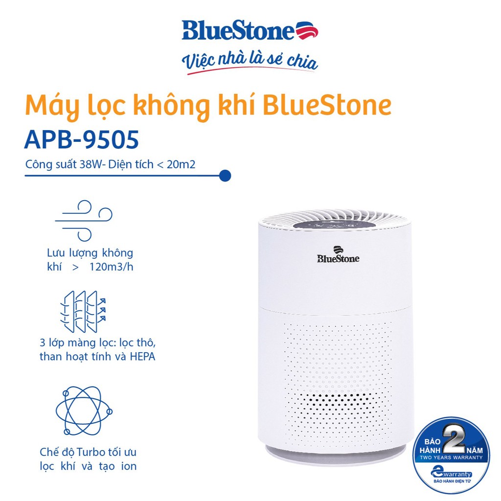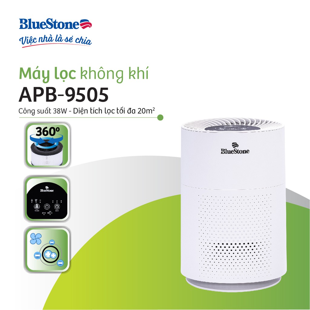 Thiết Bị Điện Gia Dụng > Thiết bị điện gia dụng nhỏ > Thiết bị xử lí không khí > Máy lọc không khí || [Mã ELBLUE44 giảm 10% đơn 500K] Máy Lọc Không Khí BlueStone APB-9505- Công suất 38W- Diện Tích Lọc Đến 20m2Còn hàng