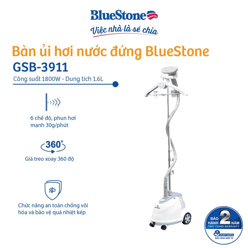 Thiết Bị Điện Gia Dụng > Thiết bị điện gia dụng nhỏ > Bàn là khô & Hơi nước || [Mã ELBLUEF22 giảm 10% đơn 500K] Bàn Ủi Hơi Nước Đứng BlueStone GSB-3911Còn hàng