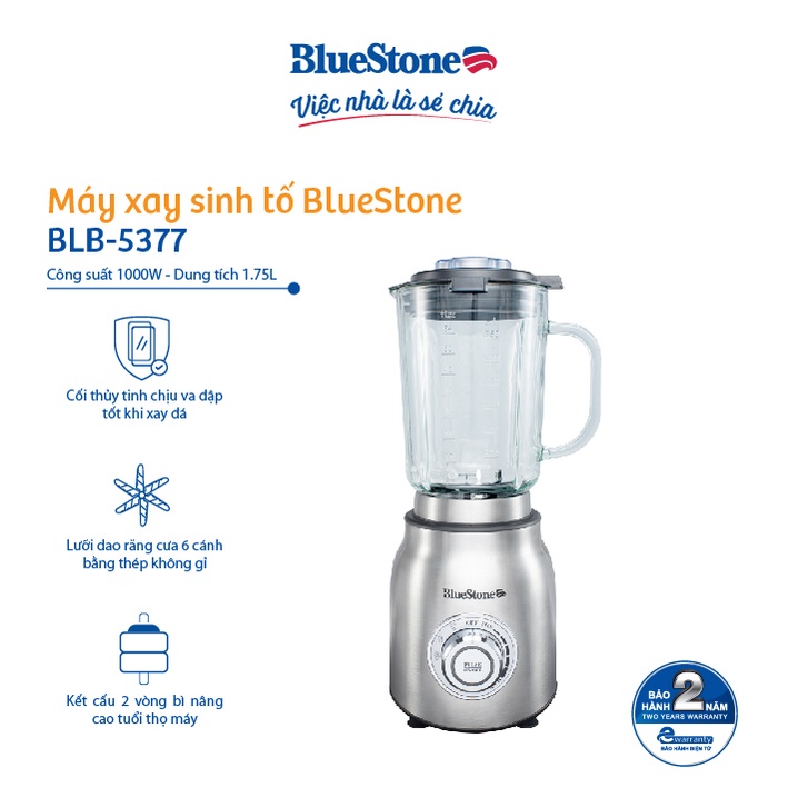 - Đặc biệt, máy xay sinh tố BlueStone có kết cấu 2 vòng bi giúp tăng tuổi thọ của máy, giảm tiếng ồn, vận hành êm ái