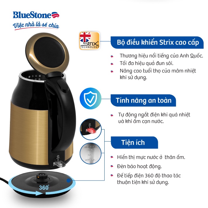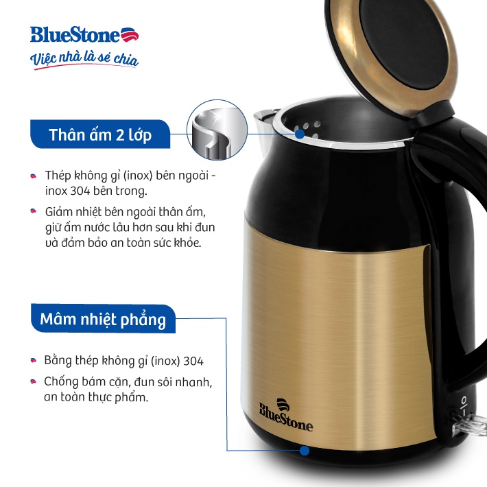 - Ấm đun BlueStone tiện dụng, an toàn và dễ sử dụng để các thành viên trong gia đình có thể dễ dàng sẻ chia việc nhà cùng nhau và tận hưởng hạnh phúc mỗi ngày.
