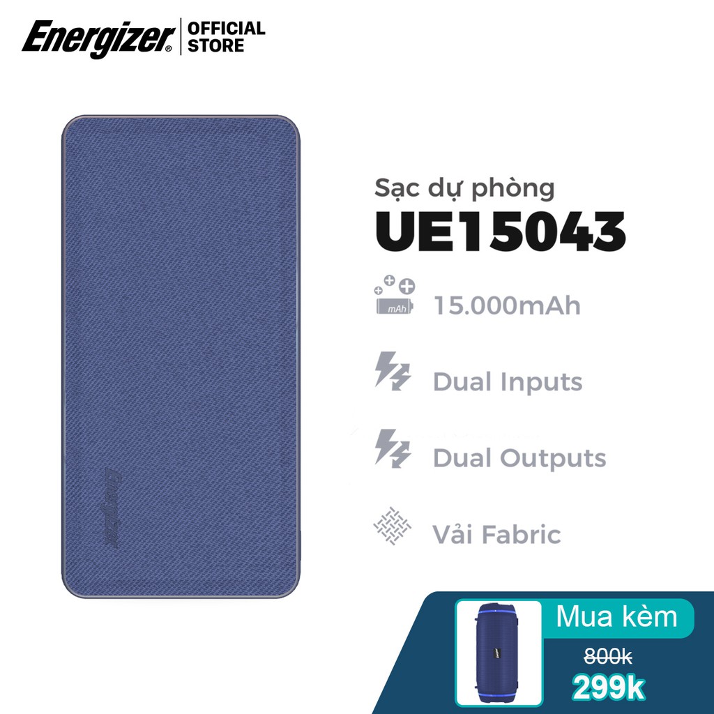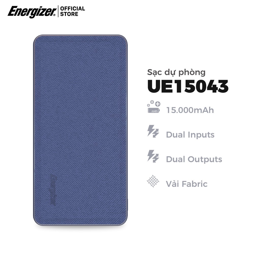 Sạc dự phòng Energizer 15000mAh UE15043 - thiết kế bọc Fabric độc đáo, tích hợp 2 cổng output tiện lợi - Hàng chính hãng
