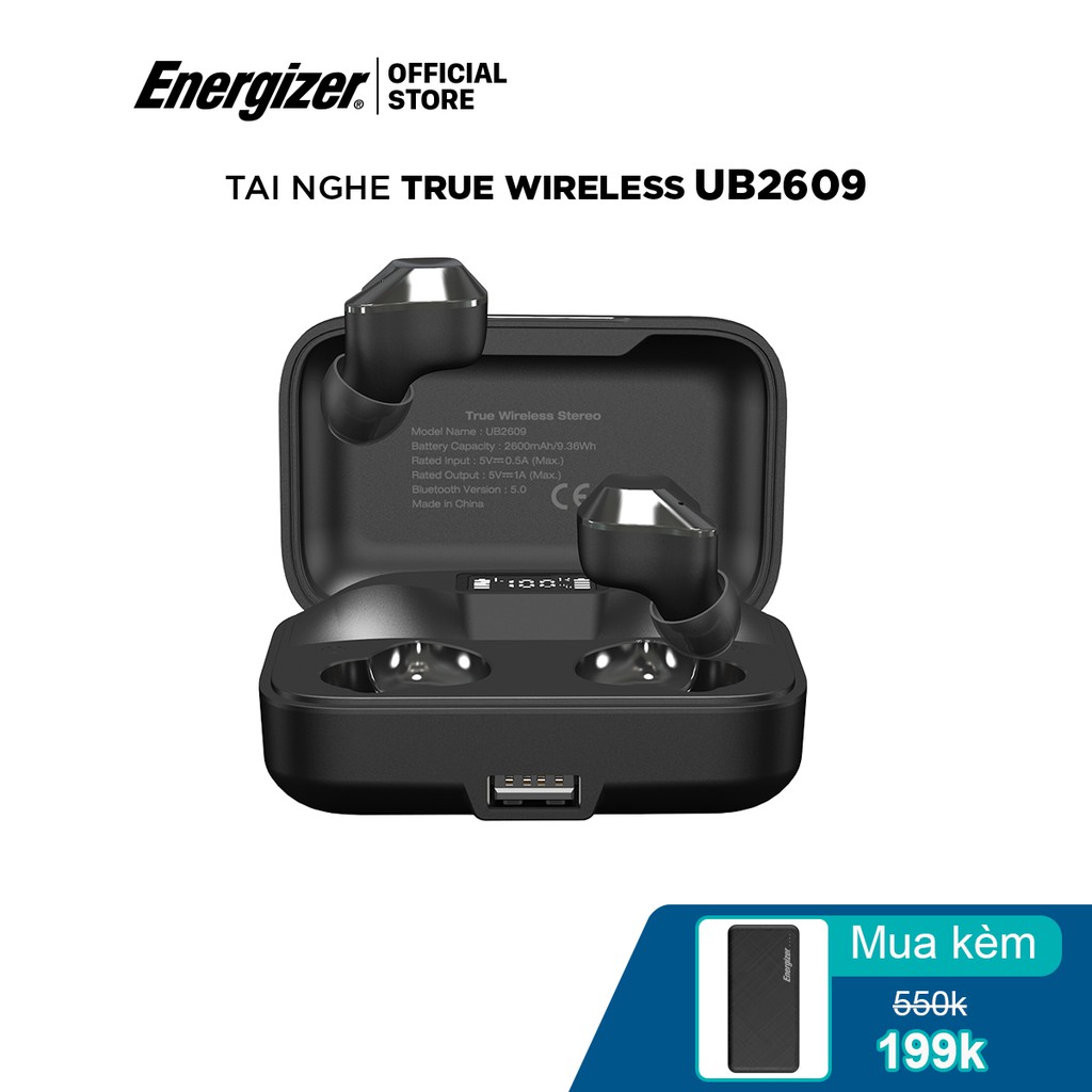 Thiết Bị Điện Tử > Tai Nghe > Nhét tai bluetooth || [Mã ELDTR70 giảm 8% đơn 599K] Tai nghe True Wireless Energizer UB2609, Bluetooth V5.0, tích hợp sạc dự phòng,kháng nướcCòn hàng