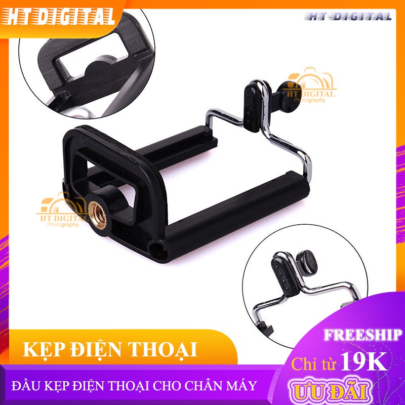 Đầu kẹp là phụ kiện bổ sung cho giúp gắn điện thoại vào chân máy ảnh. Do sử dụng cơ chế kẹp linh hoạt nên sản phẩm này có thể tương thích với hầu hết các kích thước smartphone có chiều rộng đến 55-85mm.