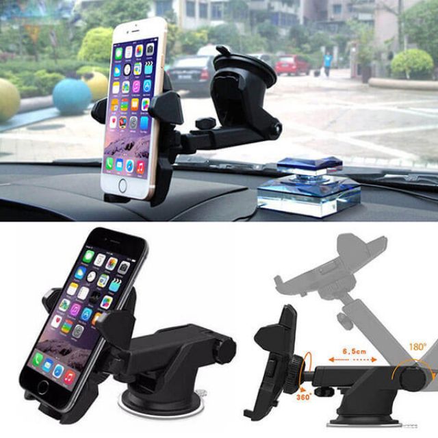 – Giá đỡ điện thoại có thể hút trên kính vừa có thể hút trên táp lô, có thể chỉnh dộ dài 10-15cm