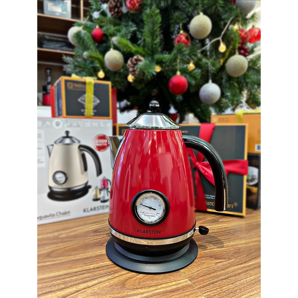 Ấm siêu tốc Klarstein đồng hồ phong cách cổ điển Retro màu đỏ siêu xịn, siêu sang.💦 Điểm nổi bật của ấm là có đồng hồ nhiệt độ bên ngoài hiển thị nhiệt độ nước đang đun