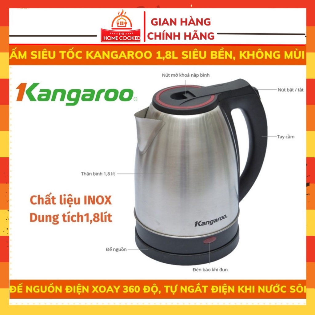 Đặc điểm nổi bật Ấm siêu tốc KangarooDung tích 1.8 lít, bình lớn phù hợp cho gia đình đông người.