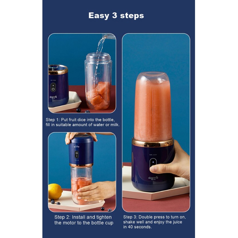 • Cốc xay trái cây có thể sạc lại. Được trang bị pin 1500mAh, bạn có thể sạc lại trên ô tô, máy tính và các thiết bị USB khác.