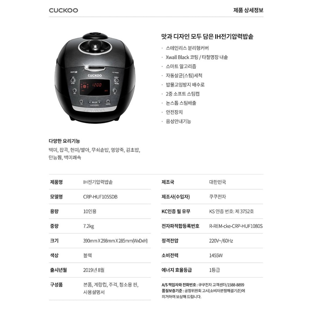 [Mã ELHADEV giảm 4% đơn 300K] [Bảo Hành 24 Tháng]Nồi Cơm Điện Cao tần Cuckoo CRP-HUF105SDB 1.8L(Nội Địa Hàn)