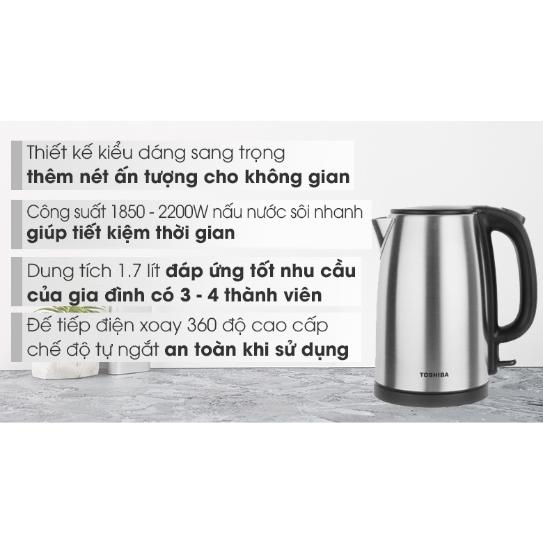 Thương hiệu: Toshiba | Xem thêm các sản phẩm Bình đun siêu tốc của ToshibaMô tả ngắn