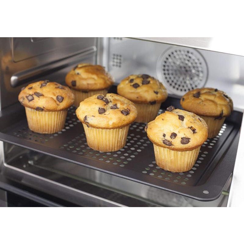 - Phụ kiện: hai khay nướng dễ dàng làm sạch CASO, một găng tay lò nướng, khay nhỏ giọt dầu mỡ.
