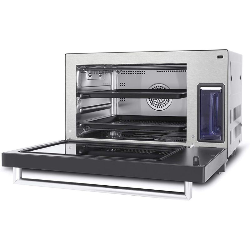 - Các tính năng đa năng: nấu bằng hơi nước, nướng, không khí nóng với hơi nước, không khí nóng, nhiệt trên và dưới, giữ ấm, rã đông, làm sạch.