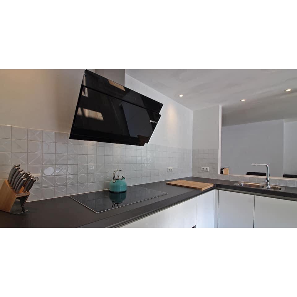 Thiết kế vát nghiêng với mặt kính pha màu đen sang trọng, mang đến đẳng cấp và sự hiện đại cho căn bếp. Nhờ khả năng cài đặt trong tuần hoàn mà thiết bị phù hợp lắp đặt cho nhiều không gian bếp nhất là các hộ chung cư không có không gian lắp đặt ống khói