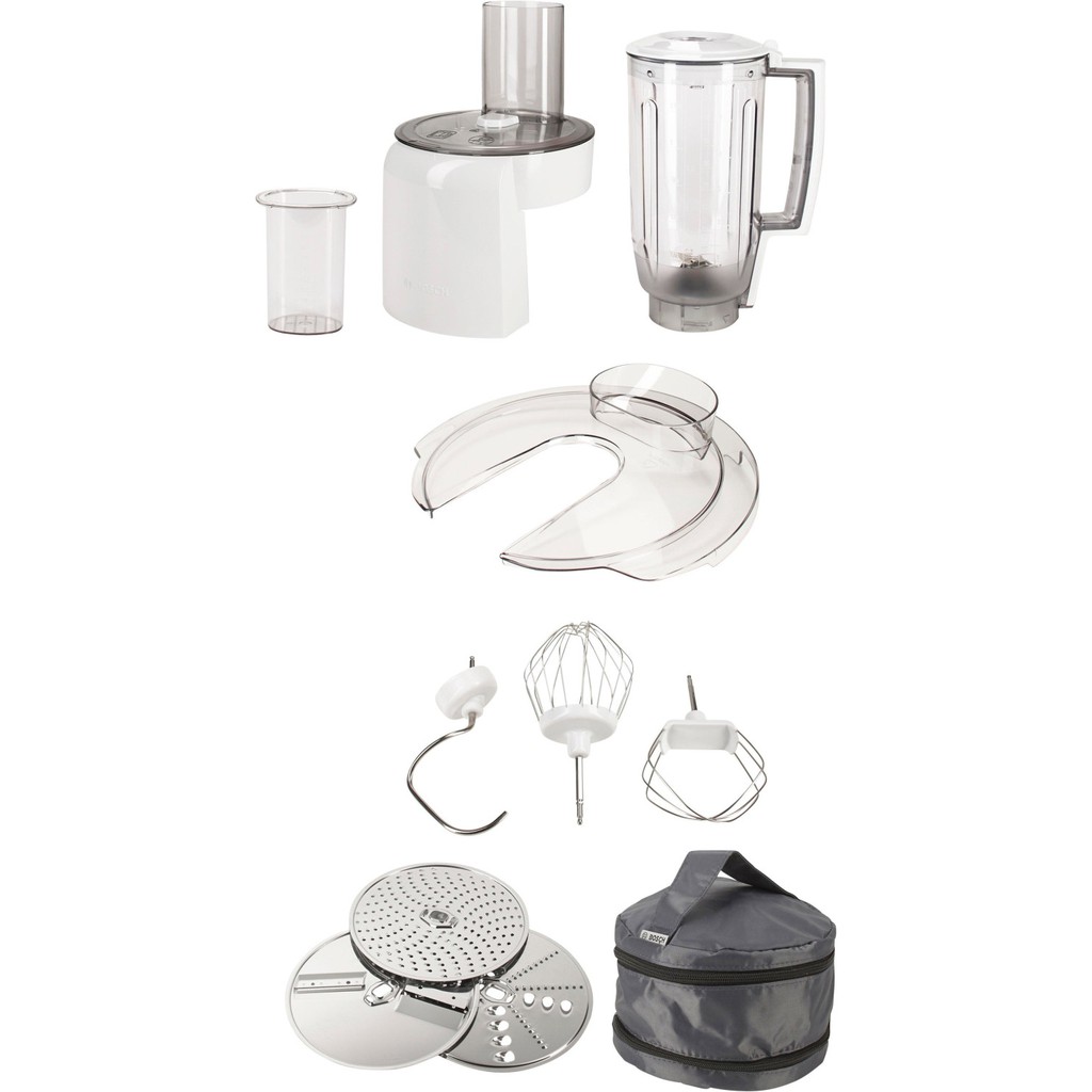 - Bộ phận xử lý thực phẩm với các phụ kiện đi kèm đa công năng dùng cho nhiều mục đích sử dụng khác nhau trong nấu nướng và làm bánh.